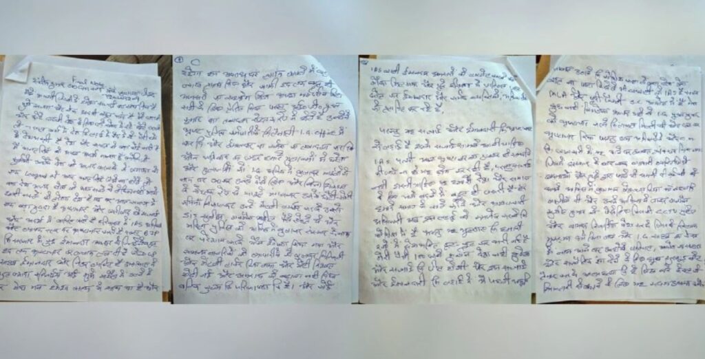 सुसाइड नोट में संदीप ने लिखा कि आईपीएस वाई पूरन कुमार भ्रष्टाचार में लिप्त हैं और उनके खिलाफ कई ठोस सबूत मौजूद हैं। उन्होंने आरोप लगाया कि अधिकारी ने सिस्टम को जातिवाद के सहारे नियंत्रित कर रखा है और ईमानदार अधिकारियों को परेशान किया जा रहा है। संदीप ने लिखा कि गिरफ्तारी के डर के चलते उन्होंने यह कदम उठाया, लेकिन अपनी मौत से पहले न्याय की मांग कर रहे हैं।सुसाइड से पहले संदीप ने चार पेज का विस्तृत नोट लिखा और वीडियो मैसेज रिकॉर्ड किया। अपने नोट में उन्होंने स्पष्ट किया कि वह अपनी शहादत देकर भ्रष्टाचार और जातिवाद की जांच की मांग कर रहे हैं और यह सुनिश्चित करना चाहते हैं कि इस भ्रष्टाचार में शामिल परिवार को कोई राहत न मिले।